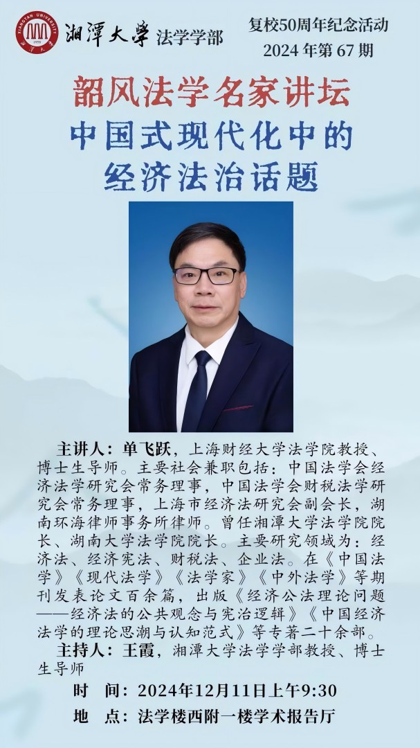 【韶风法学名家讲坛】单飞跃:中国式现代化的经济法治话题