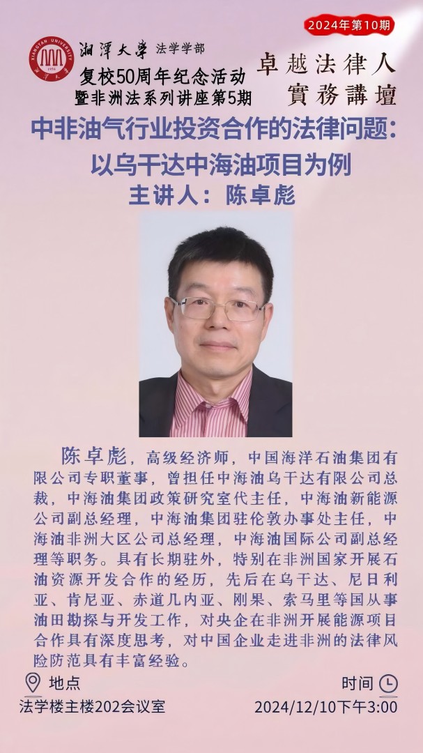 【非洲法系列讲座】陈卓彪:中非油气行业投资合作的法律问题:以乌干达中海油项目为例