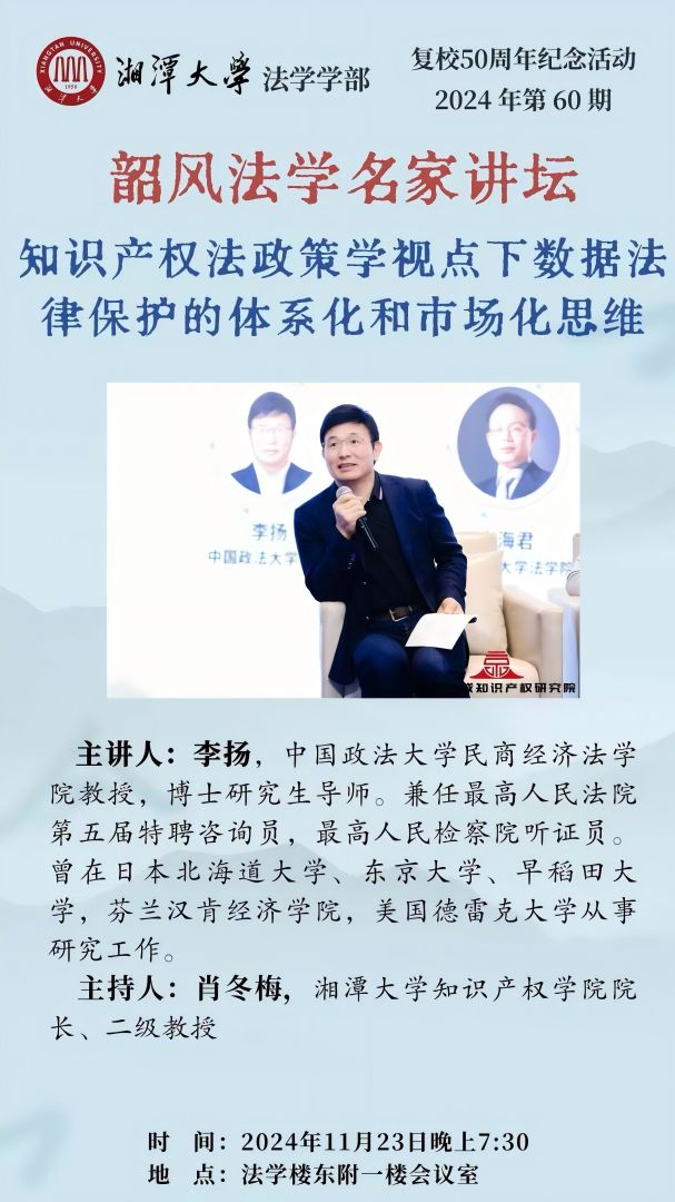 【韶风法学名家讲坛】李杨:知识产权法政策学视点下数据法律保护的体系化和市场化思维