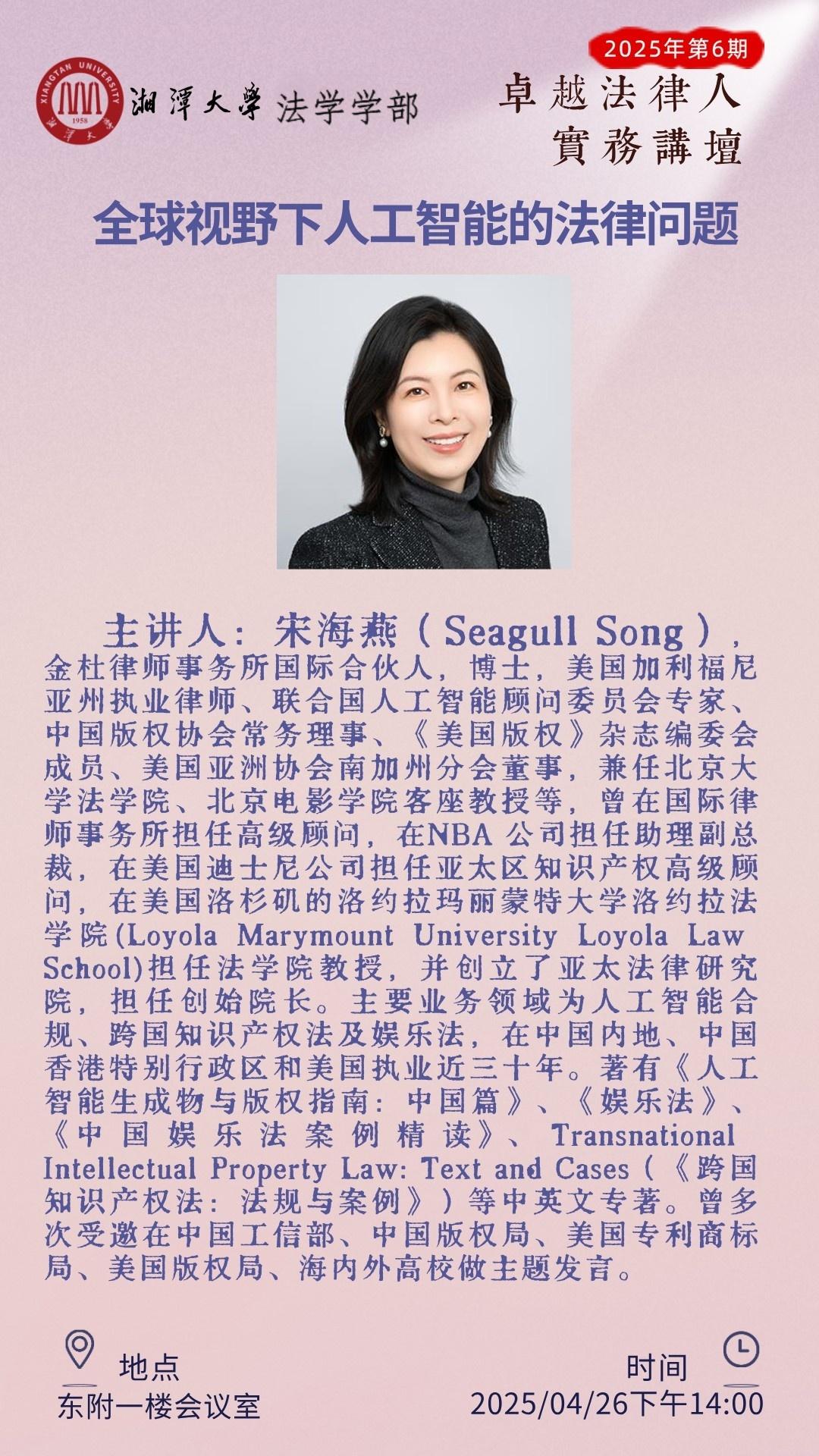 【卓越法律人实务讲坛】2025年第6期宋海燕:全球视野下人工智能的法律问题