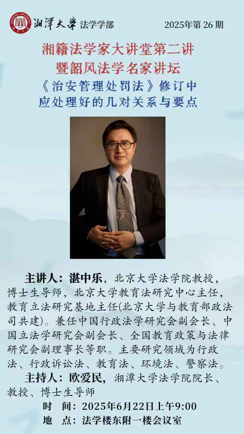 【韶风法学名家讲坛】2025年第26期 湛中乐:《治安管理处罚法》修订中应处理好的几对关系与要点