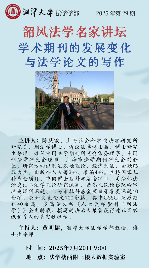 【韶风法学名家讲坛】2025年第29期 陈庆安:学术期刊的发展变化与法学论文的写作