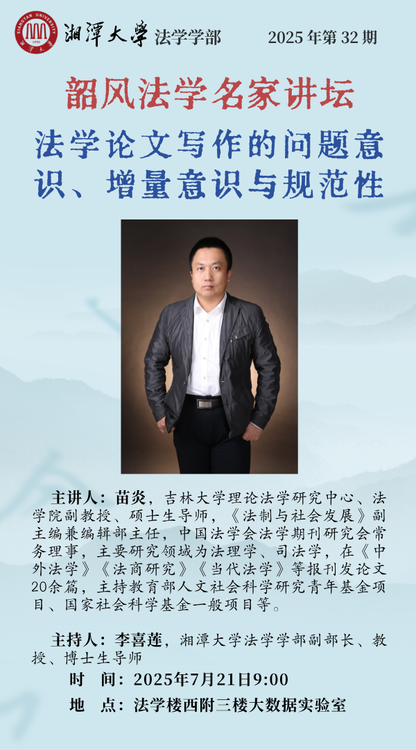 【韶风法学名家讲坛】2025年第32期 苗炎:法学论文写作的问题意识、增量意识与规范性