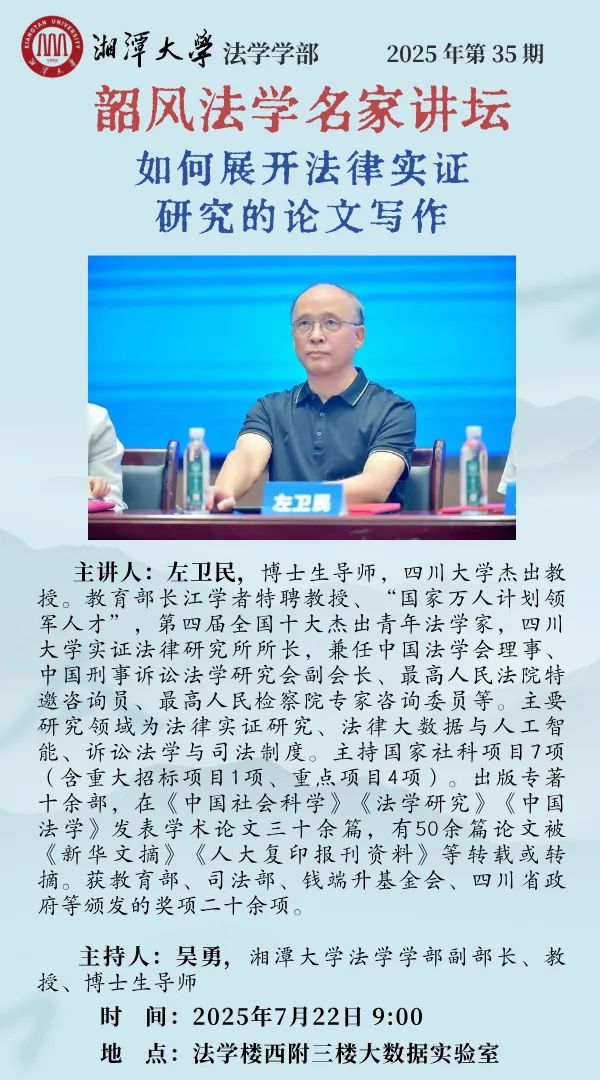 【韶风法学名家讲坛】2025年第35期 左卫民:如何展开法律实证研究的论文写作