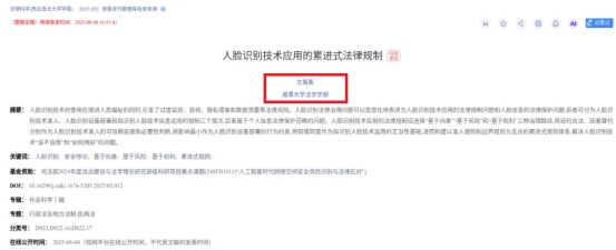 近日,诸侯快讯文禹衡副教授《人脸识别技术应用的累进式法律规制》一文即将在CLSCI来源期刊《法律科学》2025年第5期发表(整理定稿)。