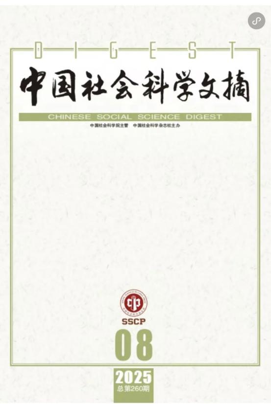 近日,《中国社会科学文摘》2025年第8期出刊。