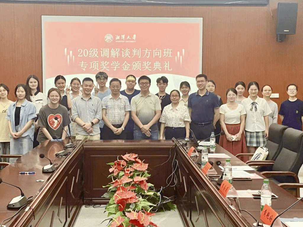 2024年5月24日晚七点半,法学学部在永雄楼东附一楼会议室召开了2020级调解谈判方向班调解专项奖学金颁奖典礼。法学学部副部长李喜莲教授、党委副书记黎益君、调解学科组组长黄艳好老师、2021级调解谈判方向班班主任段明老师、2020级调解谈判方向班班主任夏先华老师出席颁奖典礼,2020级调解谈判方向班全体同学到场参加典礼。典礼由2020级调解谈判方向班薛钟毓同学主持。