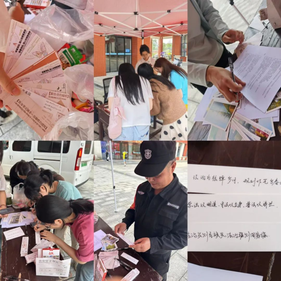 活动现场洋溢着热烈的氛围,参与者在法律文创制作环节中以帆布袋、书签、明信片为载体,将《宪法》、《民法典》条文凝练成水墨纹样、剪纸图谱等创意图案,让法治文化通过可视化设计走进生活。"法律竟能以这样亲切的方式融入日常!"一位学生展示自制的反诈主题作品时感慨道。针对校园贷、网络侵权等热点问题,现场还通过知识竞答、模拟法庭等互动形式搭建实践平台,学生们在角色扮演中理解法律程序,在案例分析中深化法治认知。