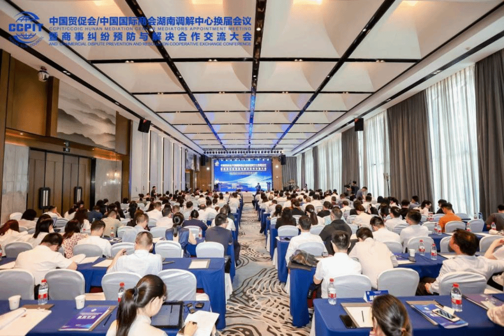 商事纠纷预防与解决合作交流大会于2024年5月23日在湖南省长沙市举行。本次大会围绕“国际商事调解动态研究”和“商事调解如何助力湖南营商环境改善的路径探讨”两大主题进行交流。会议由中国贸促会/中国国际商会湖南调解中心承办。来自湖南省高等院校、科研机构、政法机关、法律服务机构、新闻单位等200多位专家学者、法律实务工作者参加会议。法学学部调解学科组廖永安教授、李喜莲教授应邀参加会议。