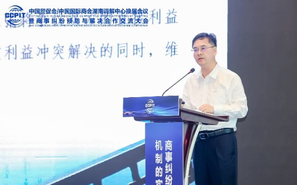 中国贸促会商法中心主任蔡晨风,湖南省政法委二级巡视员、湖南省法学会副会长兼秘书长高可议,湖南省贸促会党组副书记、副会长吴曙光出席交流会并致辞。湖南省贸促会党组副书记、副会长傅丹舟主持领导致辞环节。专题交流环节分别由中国贸促会调解中心王芳副秘书长和湖南省律师协会副秘书长、涉外与反垄断反倾销专业委员会主任尹湘南主持。会上,廖永安教授就“国际商事调解动态研究”作了专题发言,李喜莲教授就“发展商事调解是助力法治化营商环境建设的重要举措”作了专题发言。