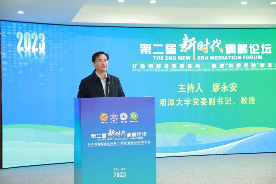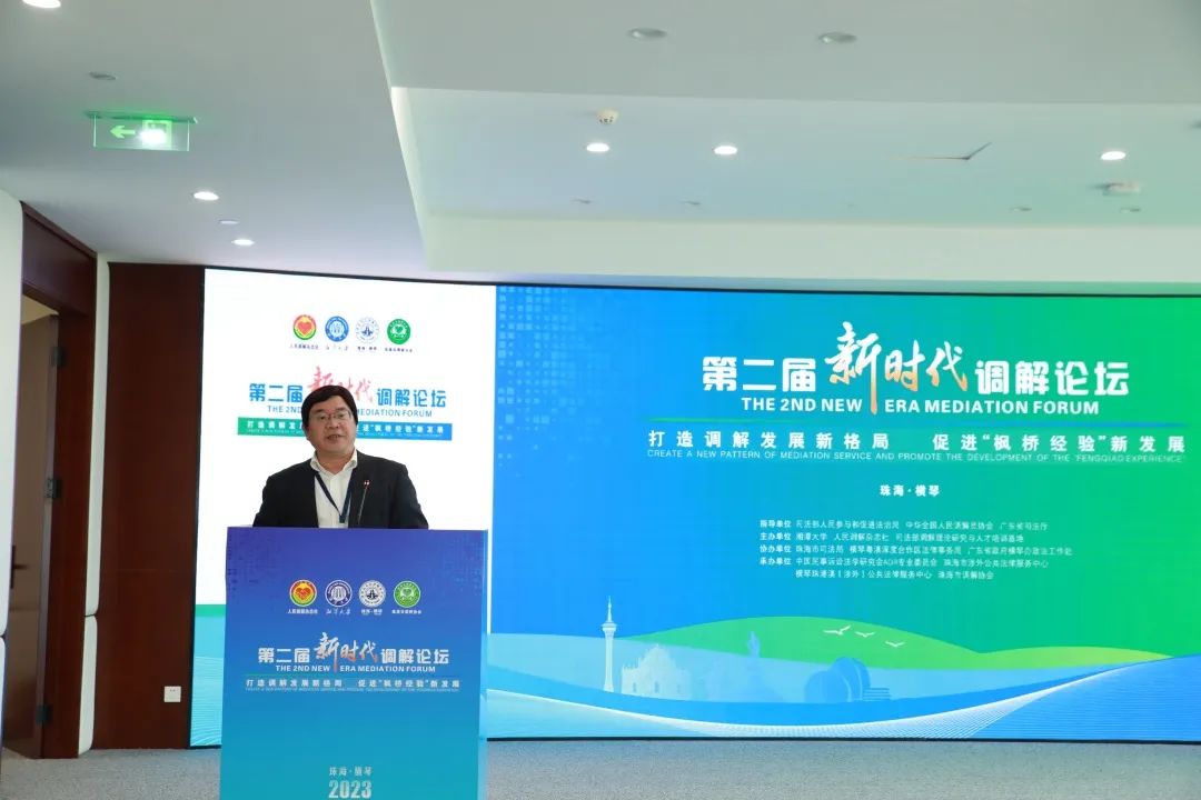 11月16日,第二届新时代调解论坛在横琴粤澳深度合作区召开。本次论坛由司法部人民参与和促进法治局、中华全国人民调解员协会、广东省司法厅指导,16831683诸侯快讯入口、人民调解杂志社、司法部调解理论研究与人才培训基地主办。论坛以“打造调解发展新格局,促进‘枫桥经验’新发展”为主题,通过开展理论研讨和实践交流,深入学习宣传贯彻习近平法治思想,全面落实全国调解工作会议精神,发挥好调解在矛盾纠纷化解中的基础性作用,为中国式现代化营造和谐稳定社会环境。来自全国各地司法行政系统、法院系统、调解组织、高等院校的160余名专家学者参加会议。