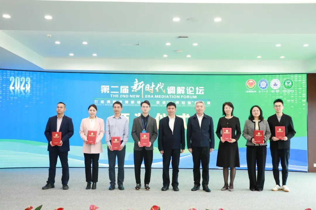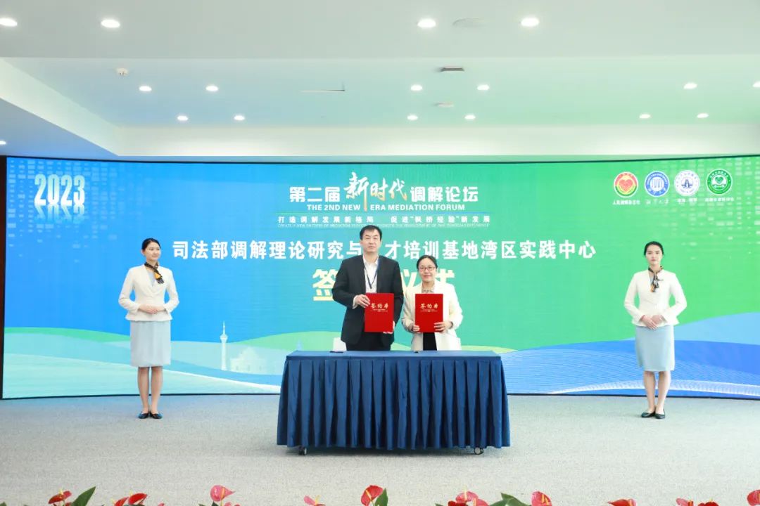 开幕式上,孟婷婷宣读了第二届新时代调解论坛征文获奖名单,与会领导为获奖作者颁奖。本次征文共评出一等奖论文7篇、二等奖15篇、三等奖25篇、优秀奖20篇。其后,举行了司法部调解理论研究与人才培训基地湾区实践中心揭牌仪式。