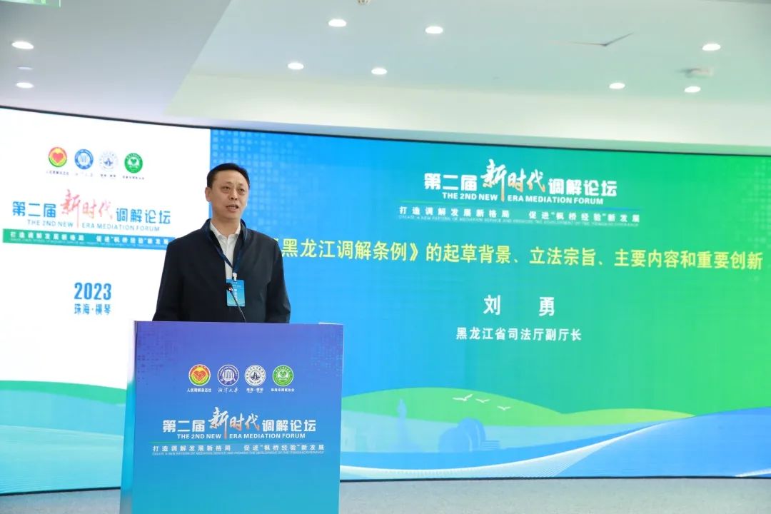 刘勇副厅长表示,制定《黑龙江省调解条例》是贯彻落实习近平总书记关于调解工作重要指示精神的重大举措。作为全国首部全面规范人民调解、行政调解、司法调解、行业性专业性调解的地方性法规,条例以构建大调解格局为抓手,贯彻了诉源治理的理念,厘清了商事调解组织法人身份、收费规范和行政调解权责不清等问题,同时结合调解实践对调解协会管理和监督职责等进行了制度的创新。