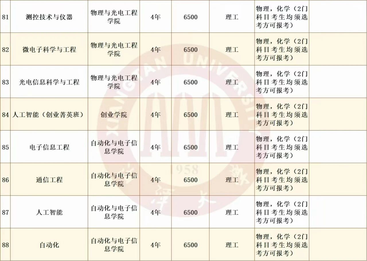 第十四条高考综合改革省份的考生必须满足我校的招生专业选科要求,非改革省份的考生必须满足我校的招生专业文理科要求。学校2024年招生专业的专业名称、所在院系、学制、学费标准、高考综合改革省市的选科要求、非改革省份的文理科要求、中外合作办学等相关要求等详见附件(16831683诸侯快讯入口2024年普通本科招生专业一览表);具体在各省的招生专业及相关类别,待我校分省分专业计划确定后,以各省招生考试机构公布的为准。
