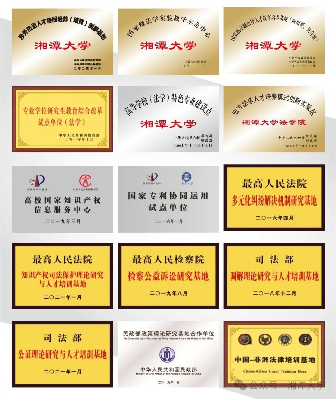 这样的基地,在湘大遍地开花:涉外(非洲)法治人才协同培养创新基地、最高法“多元化纠纷解决机制研究基地”、最高法“知识产权司法保护理论研究基地”、最高检“检察公益诉讼研究基地”、司法部调解理论研究与人才培训基地、司法部公证理论研究与人才培训基地、国家级专利协同运用试点单位、中国贸促会“涉外商事法律服务与人才培养基地”……