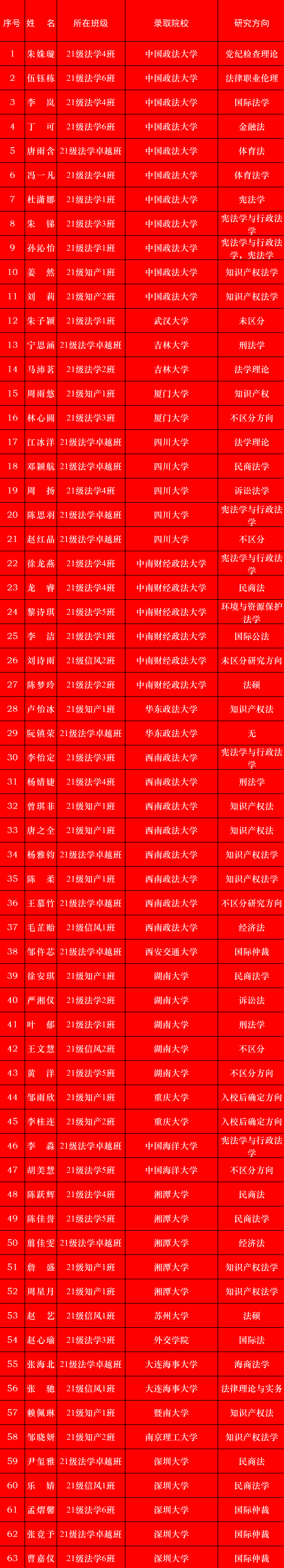 ok1188诸侯快讯官方2025届本科毕业生有63人获得推荐免试攻读硕士研究生资格,目前已全部被录取。从被录取的高校看,取得了历史上最好成绩,实现了诸多历史性突破。在此,热烈祝贺同学们通过三年不懈拼搏终于实现梦想。衷心感谢各高校对16831683诸侯快讯入口法科学子的高度认可和关爱。法学学部全体师生牢记伟人殷殷嘱托和总书记殷切期望,不忘初心,接续奋斗,为把16831683诸侯快讯入口办得更好更有特色,为法治中国建设培养更多优秀人才,贡献湘大法科力量。