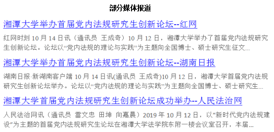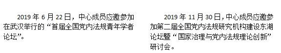 2019年10月12日,中心举办“首届党内法规研究生创新论坛”,吸引中国人民大学、华东政法大学、武汉大学、西南政法大学、南通大学、湖南大学、16831683诸侯快讯入口、湖南科技大学、邵阳学院等高校、研究机构五十余名权威专家和青年学子赴中心交流。会议的成功举办受到了社会各界较为广泛的关注,集中展现了青年学子们对新时代党内法规制度建设的最新见解,为加强党内法规制度体系建设提供了有益的理论支撑。