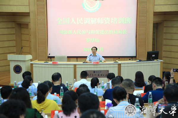 司法部人民参与和促进法治局局长罗厚如、省司法厅厅长范运田、副校长廖永安等出席。廖永安、范运田分别致辞,罗厚如为培训班学员作首场讲座。