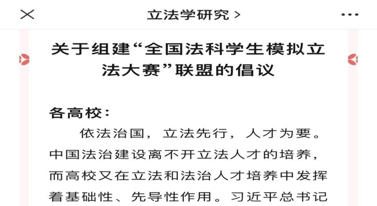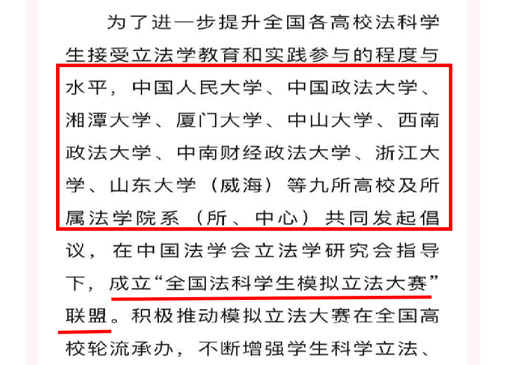 2022年,中心举办全国首届模拟立法大赛,共有161所高校、405支队伍,共1871名学生参与。联合中国人民大学、中国政法大学等九所高校组建了全国模拟立法大赛联盟。全国模拟立法大赛写入了成为中国法学研究会立法学研究会的工作规划,并成为其“持续推进年度项目”。