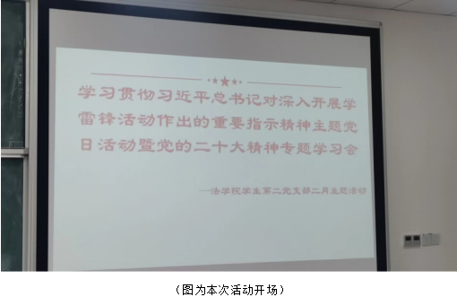 活动伊始,大家首先学习了习近平总书记对深入开展学雷锋活动作出的重要指示精神,随后大家通过一段党史学习纪录片了解回顾了雷锋同志的生平和事迹,纪录片结束后,全体党员在肖铁、赵晗等同志的带领下合唱红色歌曲《学习雷锋好榜样》,感受永不褪色的雷锋精神。在接下来的讨论交流环节,党员们结合学习内容及切身经历,对当代大学生如何更好地践行“雷锋精神”发表了自己的看法。熊晓玉同志结合自身经历,认为“帮助是有温度的”,并呼吁更多的党员同志成为提供帮助的人。李董艺琦同志则从信仰的角度出发,认为雷锋精神中闪耀着信仰的光辉,而拥有信仰的人有着源源不断的力量。