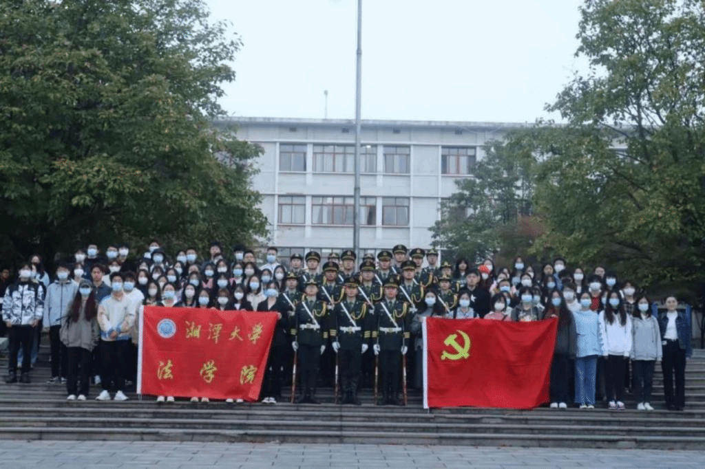 六点三十分左右,国旗护卫队队员们从风流碑出发,齐唱《歌唱祖国》向第一教学楼齐步走来。“五星红旗迎风飘扬,胜利歌声多么响亮...”身批戎装,沐浴荣光,他们昂首阔步走来,沉稳浑厚的歌声流淌在瑟瑟秋风中。队员们护送国旗至升旗台,升旗仪式正式开始。入党积极分子们在伴奏中齐唱《义勇军进行曲》,他们神情庄重、屏息凝神,向五星红旗行注目礼,自豪激动之情溢于言表。法学院入党积极分子培训班学员21级信用风险管理与法律防控专业的朱倚坤同学表示:“在周一的清晨里,庄重的国歌声中,看着五星红旗徐徐升起,我感受到了浓浓的爱国之情。作为一名入党积极分子,我更加坚定了入党的决心,身为新时代的法科学子,我们要接好前辈递过来的接力棒,好好学习,将来用自己的努力和奋斗为祖国的法制建设添砖加瓦。”(作者/雷婧璇,指导老师/江冰洁)