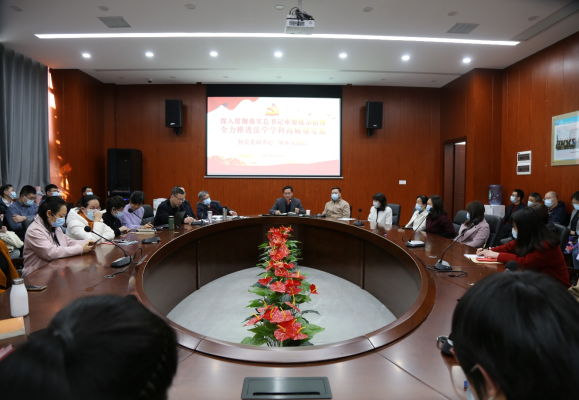3月8日下午,法学楼东附楼会议室座无虚席,校党委副书记廖永安教授以“深入贯彻落实总书记重要批示精神,全力推进法学学科高质量发展”为主题,为法学学部90多名教职工讲授了一堂精彩的党课。
