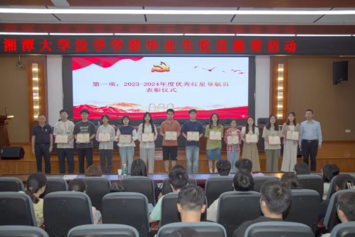 会议表彰了2023-2024年度优秀红星导航员名单,陈双喜、黎益君为优秀红星导航员颁发了荣誉证书。红星导航员制度是法学学部党委在学生党员中开展的一项党建品牌活动,通过从高年级学生党员中选拔一批优秀学生党员与新生班级、新生寝室结对,目的是为了充分发挥高年级学生党员在传帮带方面的先锋模范作用,这项活动取得了很好的效果。