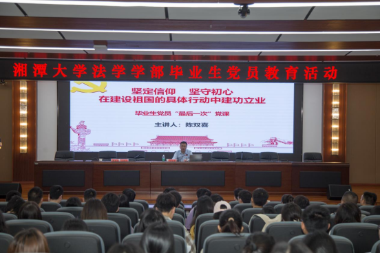为进一步落实党员教育、管理和服务长效机制,落实立德树人根本任务,增强党员“四个意识”,坚定“四个自信”,坚决做到“两个维护”,激励全体毕业生党员以良好的精神风貌踏入新的征程,以实际行动和优异的成绩为党旗增辉,2024年6月7日上午,法学学部党委在法学楼西附一楼学术报告厅开展毕业生党员专题教育活动。会议由法学学部党委副书记黎益君主持,学部党委书记陈双喜、相关辅导员老师,以及2024届毕业生党员共百余人参加了本次大会。