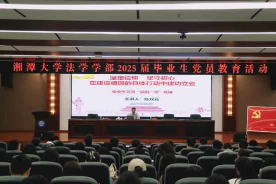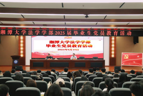为加强毕业生党员的党性教育,激励全体毕业生党员以良好的精神风貌踏入新的征程,用实际行动和优异的成绩为党旗增光添彩,2025年6月10日上午,法学学部党委在法学楼西附一楼学术报告厅开展毕业生党员专题教育活动。本次活动由法学学部党委副书记黎益君主持,学部党委书记陈双喜、组织员、相关辅导员老师,以及2025届毕业生党员共两百余人参加了本次活动。