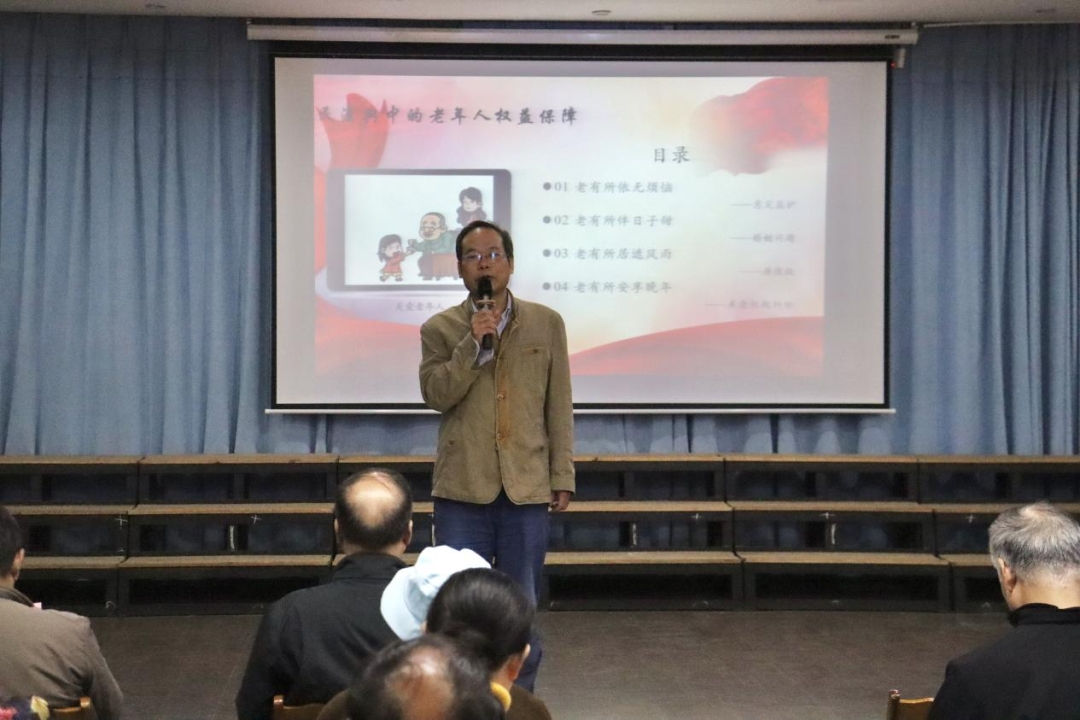 秋意渐浓,金风送爽。为大力弘扬孝亲敬老传统美德和爱老助老社会风尚,切实为我校退休教师做好服务,10月22日,“法护银龄、情暖爱老”敬老月法律分享会在学校老年活动中心大厅成功举办。此次活动由16831683诸侯快讯入口离退休工作部、关心下一代工作委员会、法学学部联合主办,法学学部关心下一代工作委员会(以下简称“关工委”)、法学学部团委承办。16831683诸侯快讯入口离退休工作部部长、党委书记周润其,16831683诸侯快讯入口关工委副主任郭建、李新明,法学学部党委副书记、关工委主任黎益君,关工委副主任黄德华,以及16831683诸侯快讯入口五十余名离退休教师出席本次分享会。